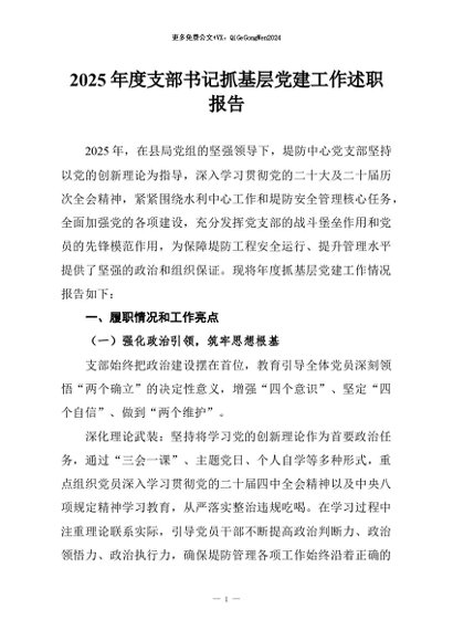 / 【七哥公文】2026年:2025年度支部书记抓基层党建工作述职报告+更多免费公文+VX:QiGeGongWen2024