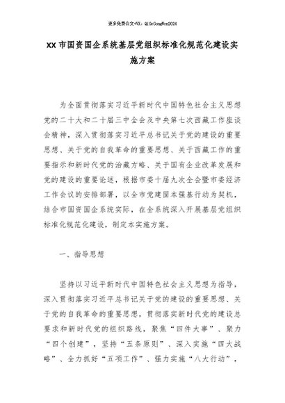 【七哥公文】2026年:XX市国资国企系统基层党组织标准化规范化建设实施方案_副本+更多免费公文+VX:QiGeGongWen2024