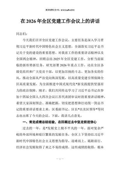 / 【七哥公文】2026年:在2026年全区党建工作会议上的讲话+更多免费公文+VX:QiGeGongWen2024