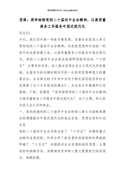 【七哥公文】2026年:党课:深学细悟党的二十届四中全会精神,以高质量商务工作服务中国式现代化_副本+更多免费公文+VX:QiGeGongWen2024
