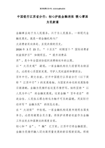 【七哥公文】2026年:中国银行江苏省分行:初心护航金融消保 暖心擘画为民新篇_副本+更多免费公文+VX:QiGeGongWen2024