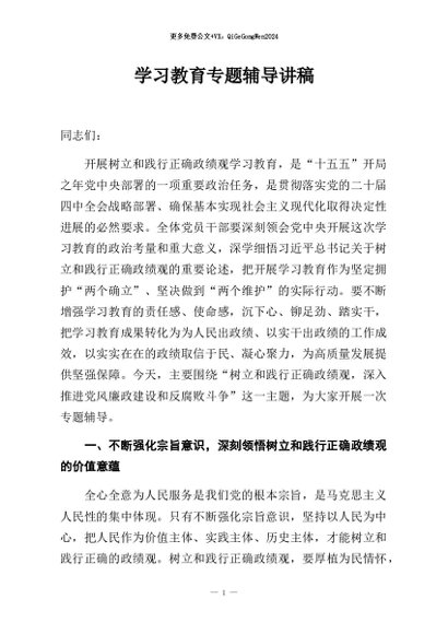 【七哥公文】2026年:党课辅导讲话:树立和践行正确政绩观,深入推进党风廉政建设和反腐败斗争+更多免费公文+VX:QiGeGongWen2024