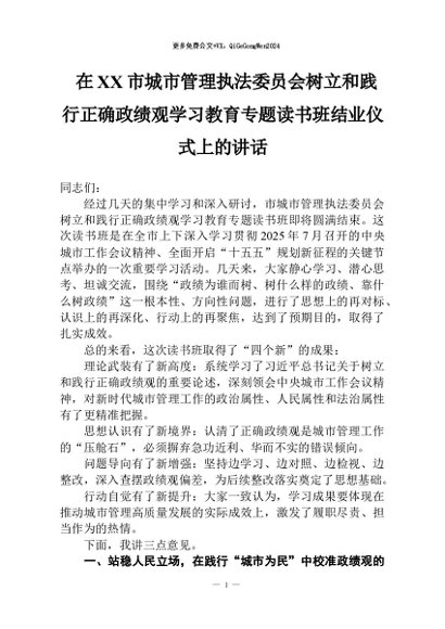 【七哥公文】2026年:在市城市管理执法委员会树立和践行正确学习教育专题读书班结业仪式上的讲话+更多免费公文+VX:QiGeGongWen2024