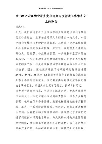 【七哥公文】2026年:在 XX 区治理物业服务突出问题专项行动工作推进会上的讲话_副本+更多免费公文+VX:QiGeGongWen2024
