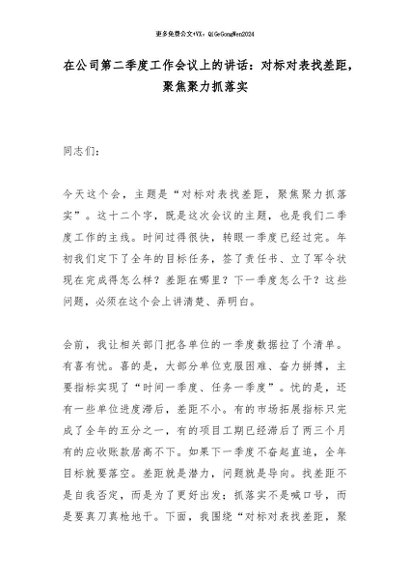 【七哥公文】2026年:在公司第二季度工作会议上的讲话:对标对表找差距,聚焦聚力抓落实_副本+更多免费公文+VX:QiGeGongWen2024