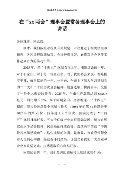 【七哥公文】2026年:在“xx两会”理事会暨常务理事会上的讲话+更多免费公文+VX:QiGeGongWen2024