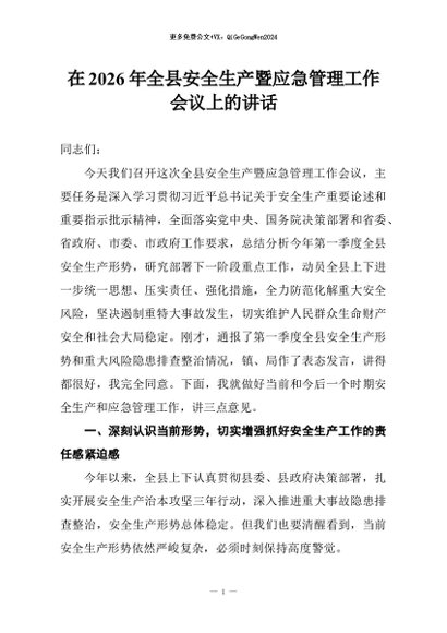 【七哥公文】2026年:在2026年全县安全生产暨应急管理工作会议上的讲话+更多免费公文+VX:QiGeGongWen2024