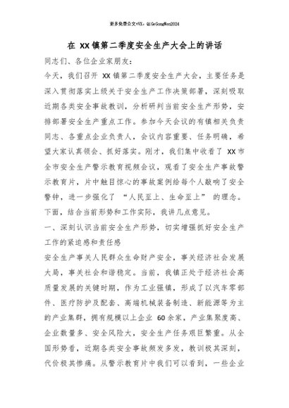 / 【七哥公文】2026年:在 XX 镇第二季度安全生产大会上的讲话_副本+更多免费公文+VX:QiGeGongWen2024