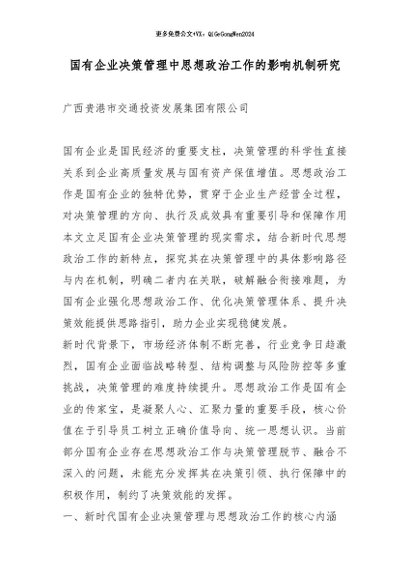 【七哥公文】2026年:国有企业决策管理中思想政治工作的影响机制研究_副本+更多免费公文+VX:QiGeGongWen2024