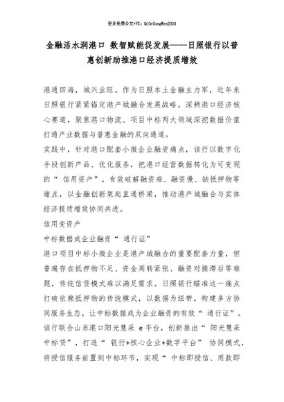 【七哥公文】2026年:金融活水润港口 数智赋能促发展——日照银行以普惠创新助推港口经济提质增效_副本+更多免费公文+VX:QiGeGongWen2024