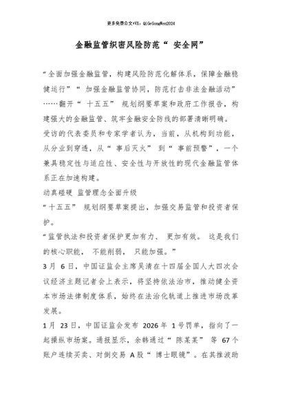 / 【七哥公文】2026年:金融监管织密风险防范“ 安全网”_副本+更多免费公文+VX:QiGeGongWen2024