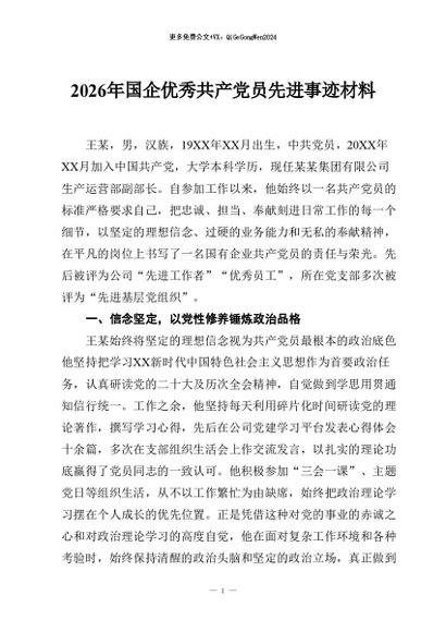 / 【七哥公文】2026年:2026年国企优秀共产党员先进事迹材料+更多免费公文+VX:QiGeGongWen2024