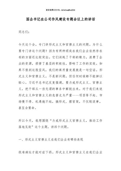 / 【七哥公文】2026年:国企书记在公司作风建设专题会议上的讲话_副本+更多免费公文+VX:QiGeGongWen2024