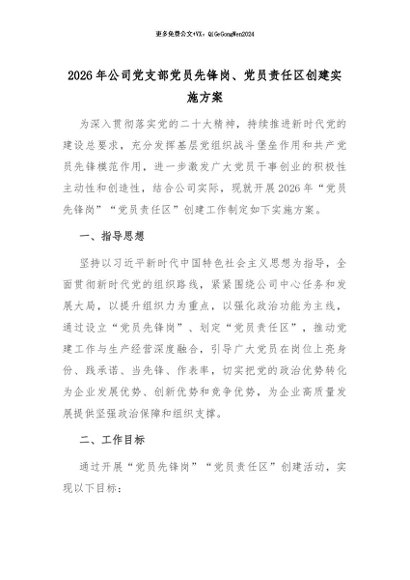 【七哥公文】2026年:2026年公司党支部党员先锋岗、党员责任区创建实施方案_副本+更多免费公文+VX:QiGeGongWen2024