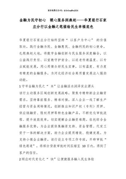 【七哥公文】2026年:金融为民守初心 暖心服务润燕赵——华夏银行石家庄分行以金融之笔描绘民生幸福底色_副本+更多免费公文+VX:QiGeGongWen2024
