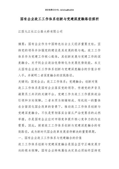 【七哥公文】2026年:国有企业政工工作体系创新与党建深度融路径探析_副本+更多免费公文+VX:QiGeGongWen2024