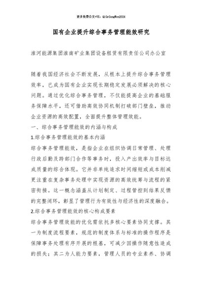 / 【七哥公文】2026年:国有企业提升综合事务管理能效研究_副本+更多免费公文+VX:QiGeGongWen2024