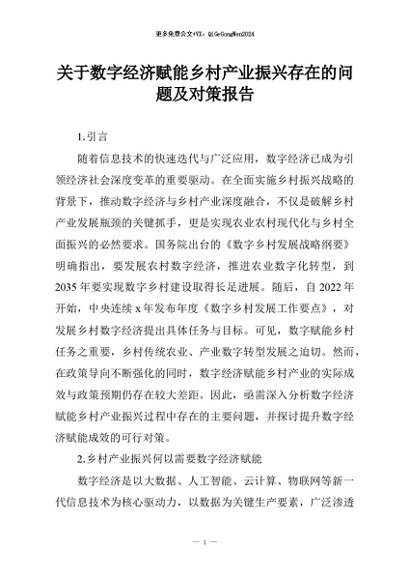 【七哥公文】2026年:关于数字经济赋能乡村产业振兴存在的问题及对策报告+更多免费公文+VX:QiGeGongWen2024