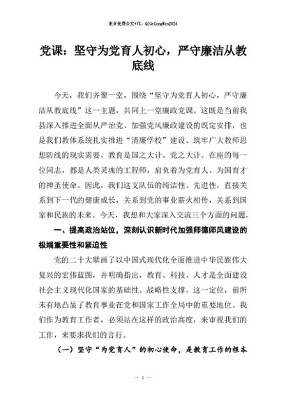/ 【七哥公文】2026年:党课:坚守为党育人初心,严守廉洁从教底线+更多免费公文+VX:QiGeGongWen2024