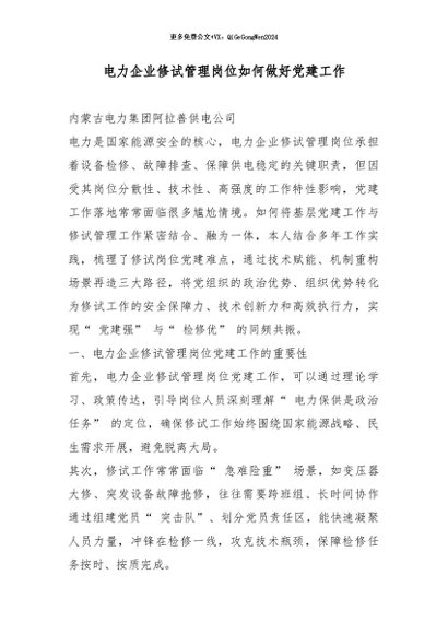 【七哥公文】2026年:电力企业修试管理岗位如何做好党建工作_副本+更多免费公文+VX:QiGeGongWen2024