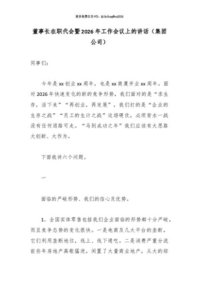 【七哥公文】2026年:董事长在职代会暨2026年工作会议上的讲话(集团公司)_副本+更多免费公文+VX:QiGeGongWen2024