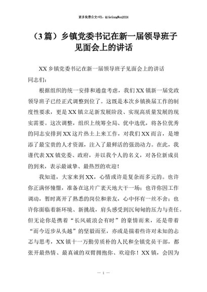 【七哥公文】2026年:(3篇)乡镇党委书记在新一届领导班子见面会上的讲话+更多免费公文+VX:QiGeGongWen2024