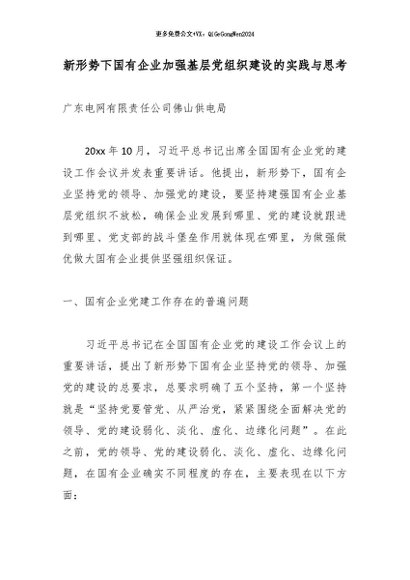 【七哥公文】2026年:新形势下国有企业加强基层党组织建设的实践与思考_副本+更多免费公文+VX:QiGeGongWen2024
