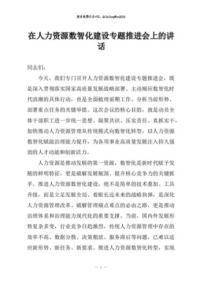/ 【七哥公文】2026年:在人力资源数智化建设专题推进会上的讲话+更多免费公文+VX:QiGeGongWen2024