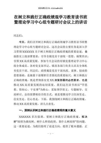 【七哥公文】2026年:在树立和践行正确政绩观学习教育读书班暨理论学习中心组专题研讨会议上的讲话+更多免费公文+VX:QiGeGongWen2024