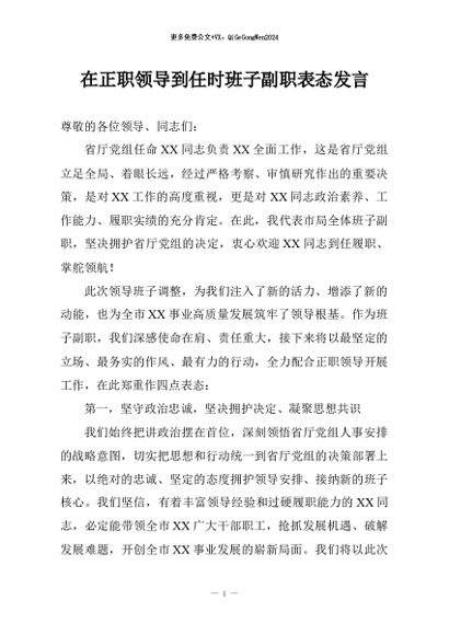 / 【七哥公文】2026年:在正职领导到任时班子副职表态发言+更多免费公文+VX:QiGeGongWen2024