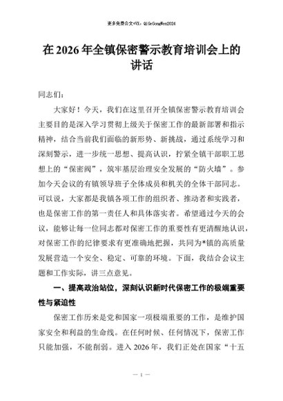 / 【七哥公文】2026年:在2026年全镇保密警示教育培训会上的讲话+更多免费公文+VX:QiGeGongWen2024
