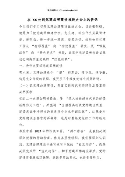 【七哥公文】2026年:在 XX 公司党建品牌建设推进大会上的讲话_副本+更多免费公文+VX:QiGeGongWen2024