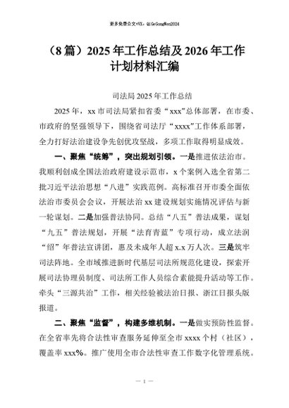 【七哥公文】2026年:(8篇)2025年工作总结及2026年工作计划材料汇编+更多免费公文+VX:QiGeGongWen2024
