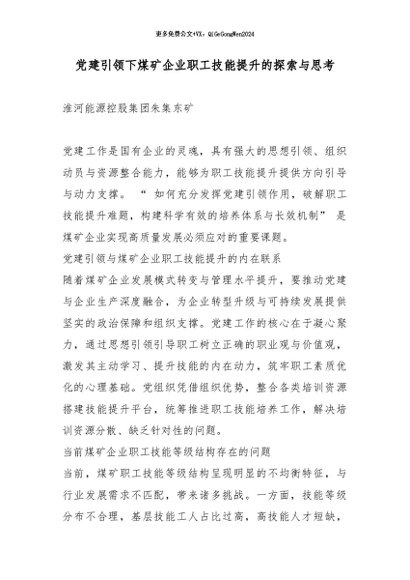 【七哥公文】2026年:党建引领下煤矿企业职工技能提升的探索与思考_副本+更多免费公文+VX:QiGeGongWen2024