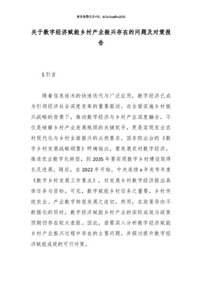 【七哥公文】2026年:关于数字经济赋能乡村产业振兴存在的问题及对策报告_副本+更多免费公文+VX:QiGeGongWen2024
