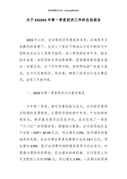 【七哥公文】2026年:关于XX2026年第一季度经济工作的总结报告_副本+更多免费公文+VX:QiGeGongWen2024