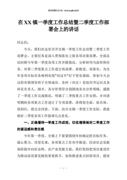 / 【七哥公文】2026年:在镇一季度工作总结暨二季度工作部署会上的讲话+更多免费公文+VX:QiGeGongWen2024