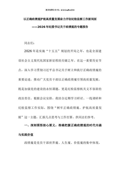 / 【七哥公文】2026年:2026年纪委书记关于政绩观的专题报告+更多免费公文+VX:QiGeGongWen2024