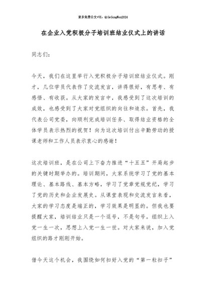 / 【七哥公文】2026年:在企业入党积极分子培训班结业仪式上的讲话_副本+更多免费公文+VX:QiGeGongWen2024