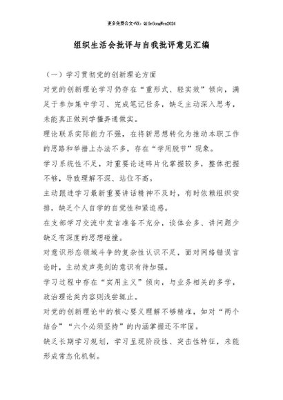 / 【七哥公文】2026年:组织生活会批评与自我批评意见汇编_副本+更多免费公文+VX:QiGeGongWen2024