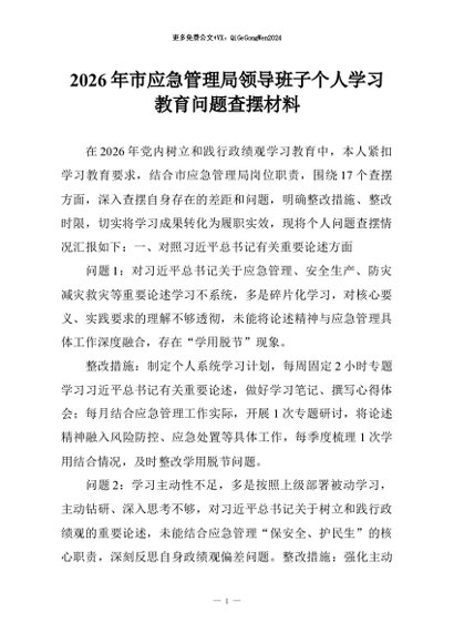 【七哥公文】2026年:2026年市应急管理局领导班子个人学习教育问题查摆材料+更多免费公文+VX:QiGeGongWen2024