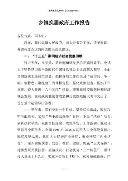 【七哥公文】2026年:乡镇换届政府工作报告+更多免费公文+VX:QiGeGongWen2024