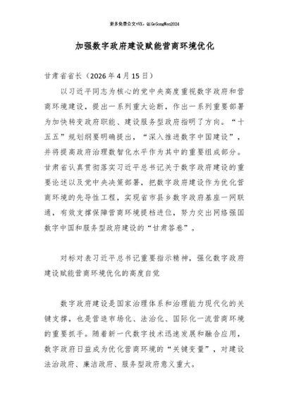 / 【七哥公文】2026年:加强数字政府建设赋能营商环境优化_副本+更多免费公文+VX:QiGeGongWen2024