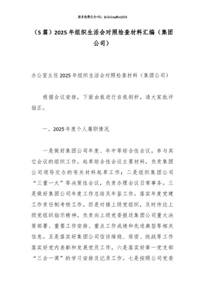【七哥公文】2026年:(5篇)2025年组织生活会对照检查材料汇编(集团公司)_副本+更多免费公文+VX:QiGeGongWen2024