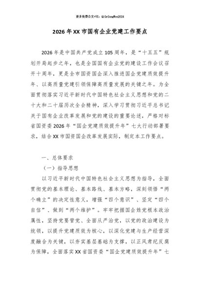 / 【七哥公文】2026年:2026年XX市国有企业党建工作要点2_副本+更多免费公文+VX:QiGeGongWen2024