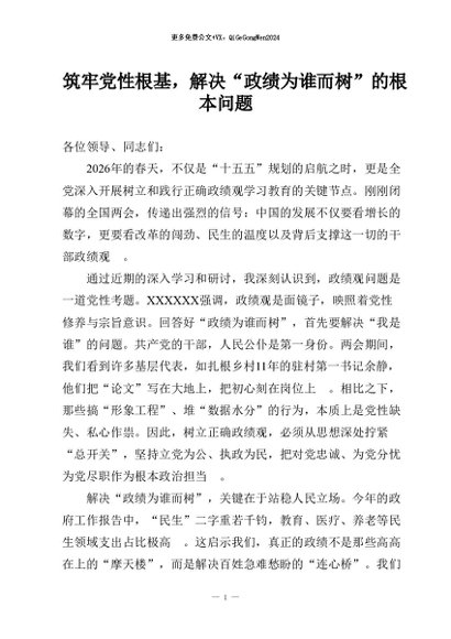 【七哥公文】2026年:(5篇)树立和践行正确政绩观学习教育研讨发言+更多免费公文+VX:QiGeGongWen2024
