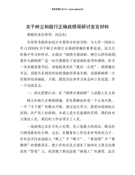 / 【七哥公文】2026年:树立和践行正确政绩观研讨发言(乡镇)+更多免费公文+VX:QiGeGongWen2024