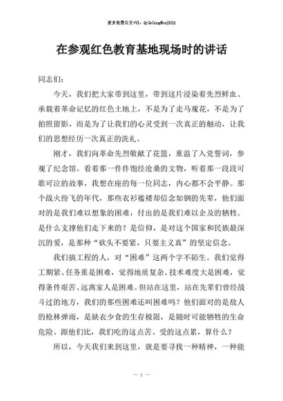 / 【七哥公文】2026年:在参观红色教育基地现场时的讲话+更多免费公文+VX:QiGeGongWen2024