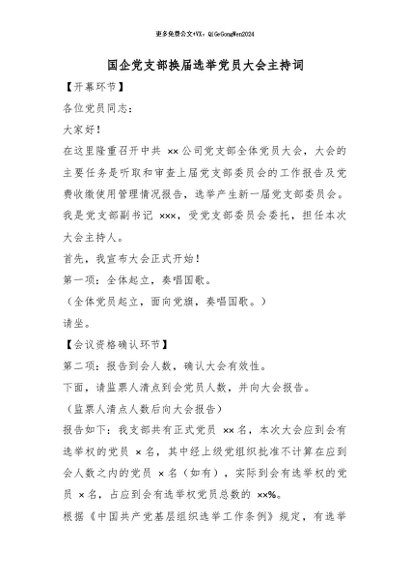 / 【七哥公文】2026年:国企党支部换届选举党员大会主持词_副本+更多免费公文+VX:QiGeGongWen2024