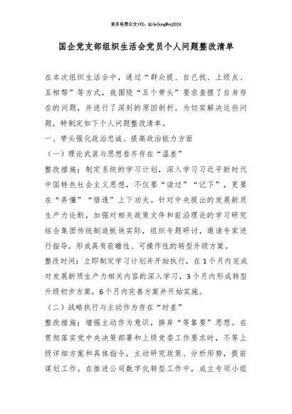 / 【七哥公文】2026年:国企党支部组织生活会党员个人问题整改清单_副本+更多免费公文+VX:QiGeGongWen2024